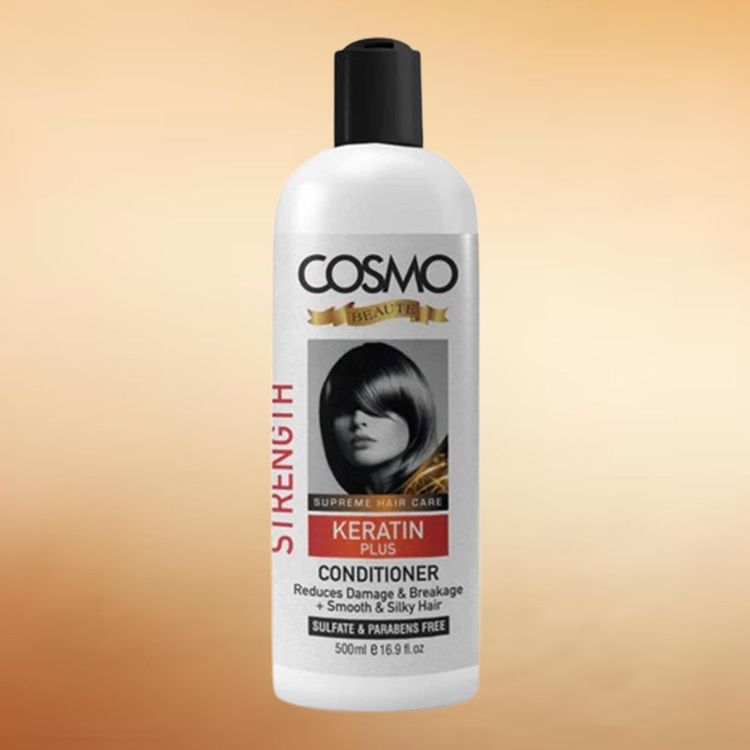 The COSMO Keratin Plus Conditioner is the go-to solution for those looking for a gentle and effective conditioner that nourishes and hydrates hair without stripping natural oils. Our specially formulated conditioner is enriched with a blend of natural ingredients including argan oil and wheat, providing a deep scalp and hair conditioning, promoting healthy hair growth and reducing hair dryness.