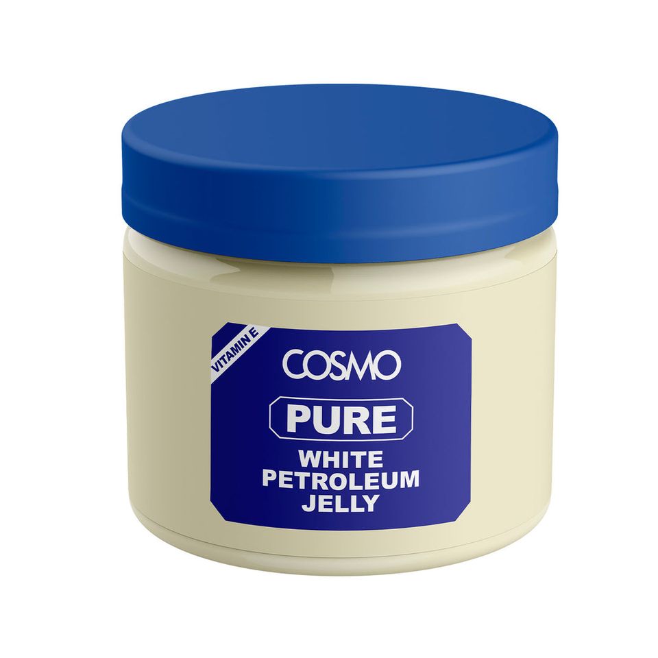 Cosmo Petroleum Jelly White is a 250 ML jar of skin-protecting and nourishing jelly. Made with pure petroleum and no additives or fragrances, it locks in moisture and soothes dry, cracked skin. Recommended by industry experts for its proven effectiveness and gentle formula.