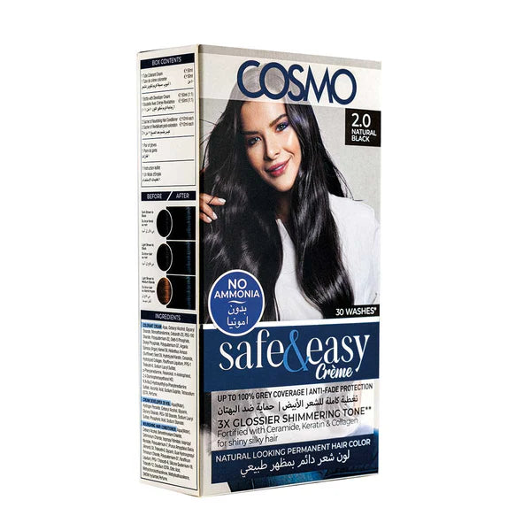 Discover vibrant, radiant color with Cosmo Safe & Easy Creme Natural Black 2.0. Formulated without ammonia, this gentle cream provides a luxurious application while protecting your hair. Enjoy rich, long-lasting copper tones that illuminate your natural beauty. Ideal for all hair types, it nourishes and conditions for a soft, healthy finish. Transform your look effortlessly with this user-friendly, salon-quality color solution!