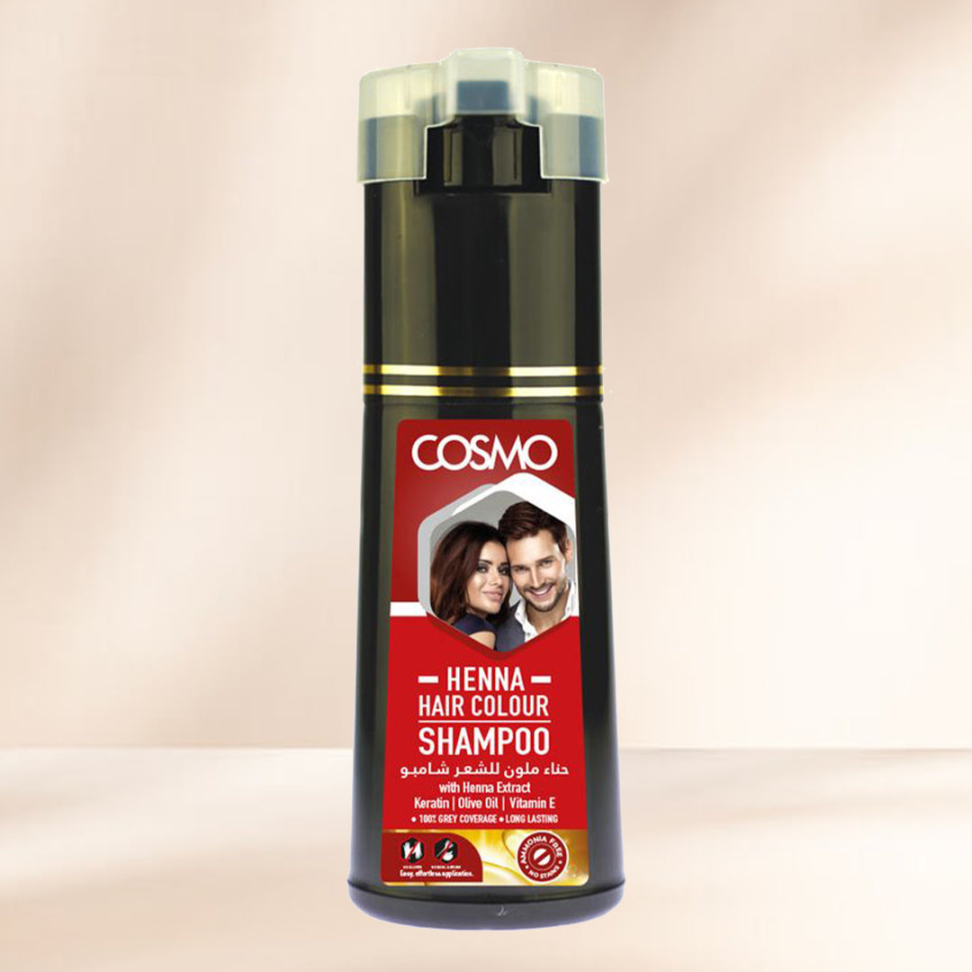Introducing Cosmo Hair Color Shampoo henna, colour enriched with Vitamin E, Olive Oil & Keratin – your go-to solution for a stunning brown hair colour that strengthens, nourishes, and protects your hair.