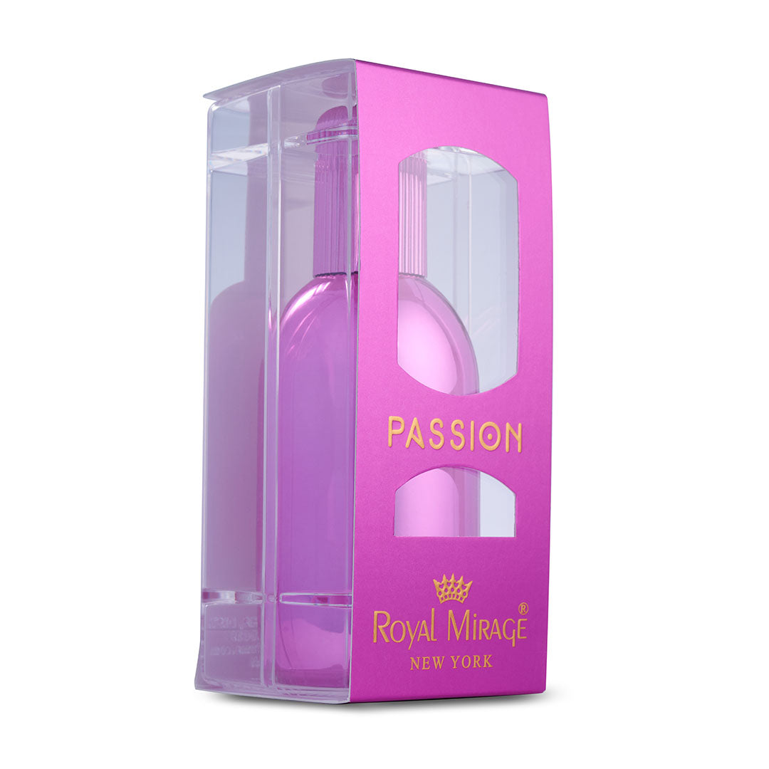 Embrace your inner passion with Royal Mirage Passion Eau De Toilette. It opens with the sweetness of Sweet Orange, zesty Bergamot, and the freshness of Raspberry Leaves, like a burst of sunshine. The heart holds the floral notes of Jasmine, the exotic touch of Saffron, and the sweetness of Sugared Blackcurrant, adding a hint of mystery. Finally, the base notes of Warm Amber, earthy Birch Moss, soft Blond Woods, and Caramelized Sugar create a warm and inviting aura, engulfing you in a sensuous and irresistible embrace.